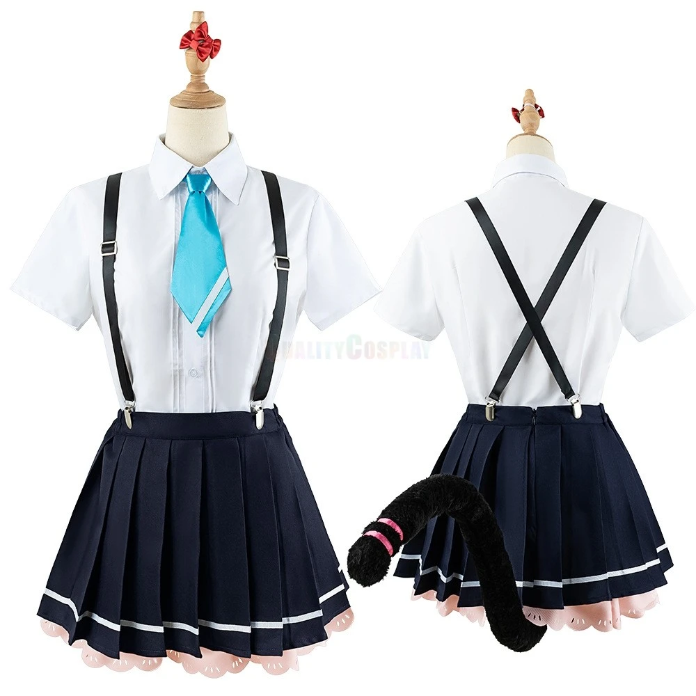 Full Set Include: Coat, Blouse, Skirt, Tie, Bow, Supenders, Headband, Tail, Socks, Hair Pin