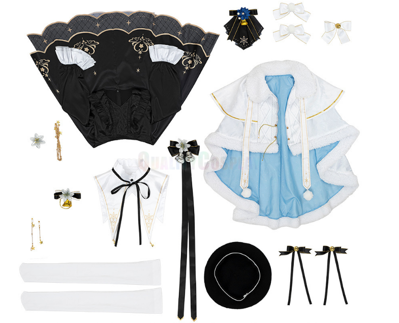 Full Set Include:Â Dress, Sash, Bowtie, Hat, Collar Ornament, Stockings, Waist chain, Cape, AccessoriesÂ